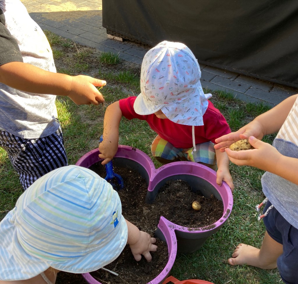 Die Kinder bestaunten die kleinen und größeren goldenen Kugeln aus der Erde und hätten am liebsten sofort gekostet.